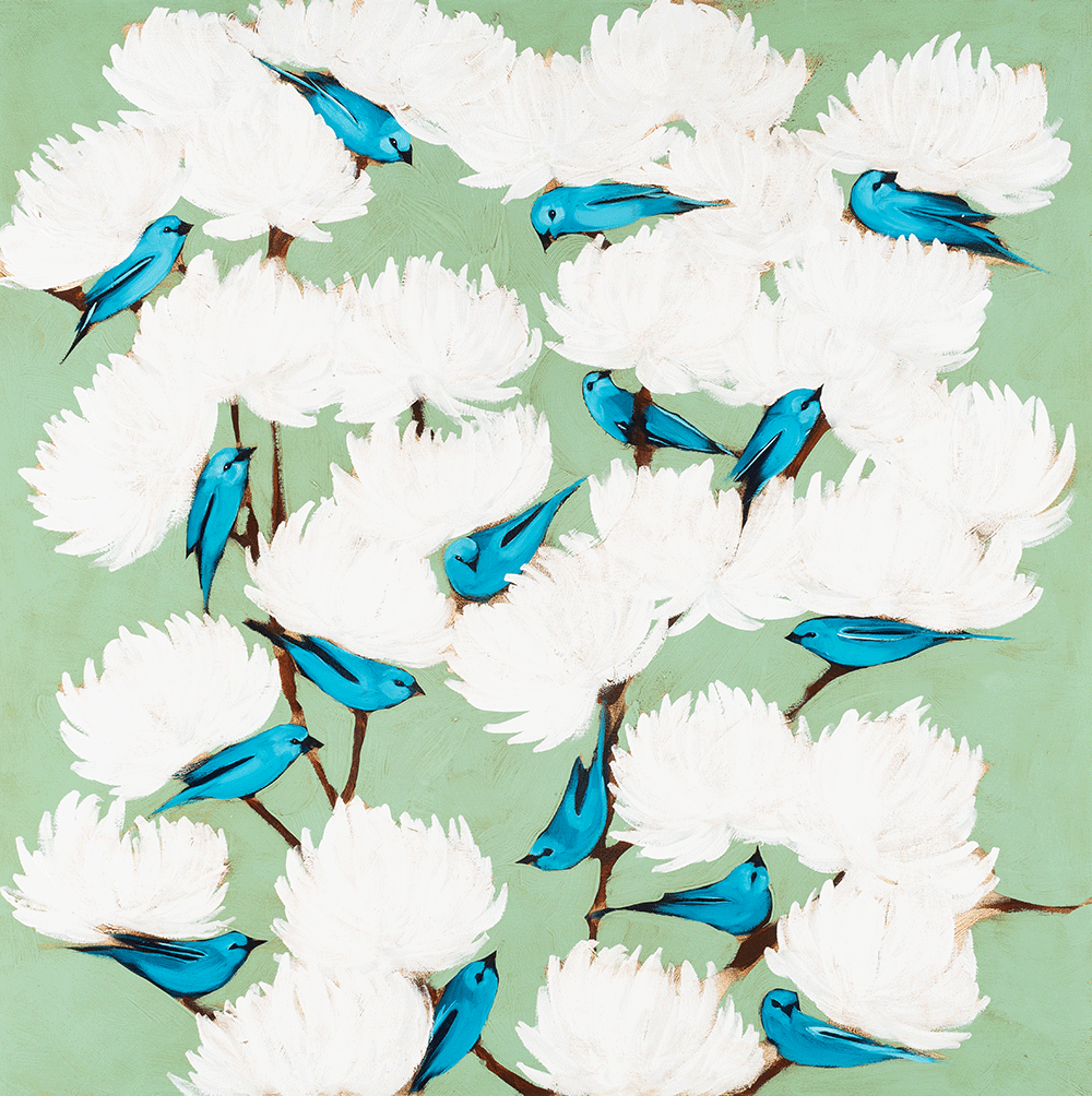 “Blue on Blue”  Features the Blue Bird and White Flowers